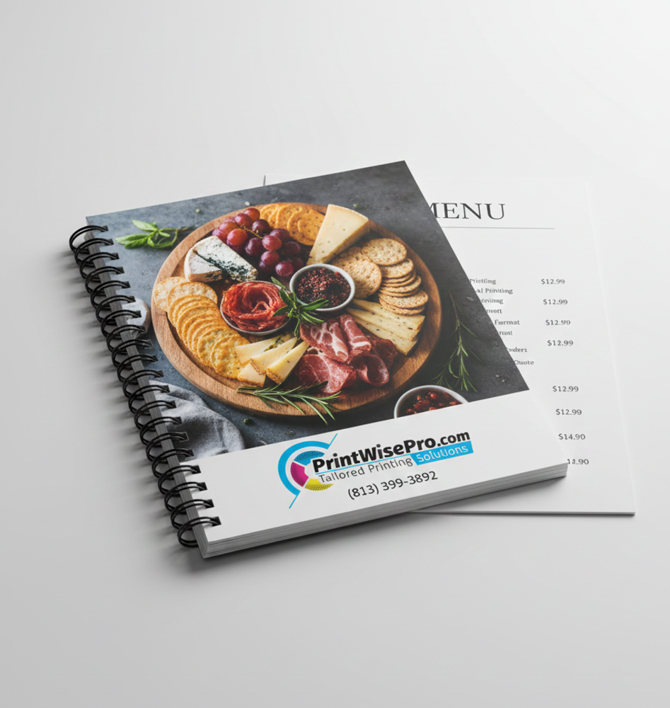 Laminated gloss 10Mil menus printed full color and pouch laminagted for durability.